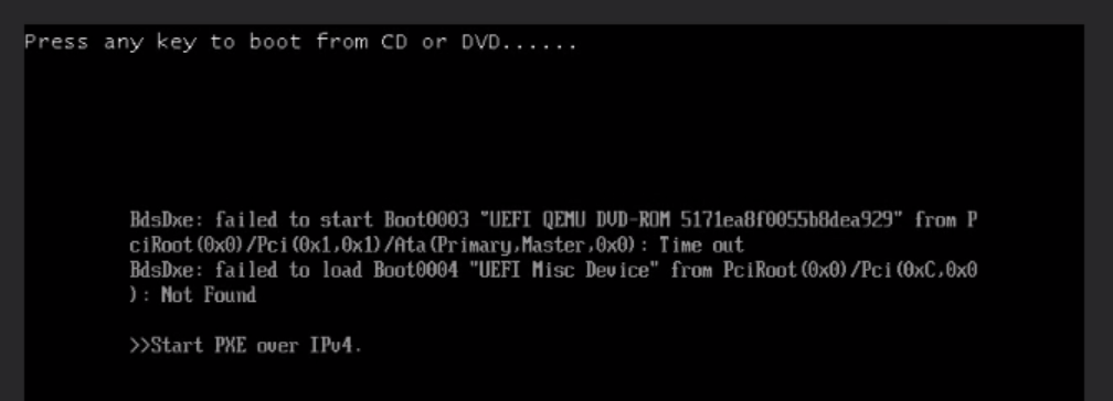 2、若启动虚拟机并出现 press any key 的提示,需要按任意键 (否则安装的时候会提示不符合要求)