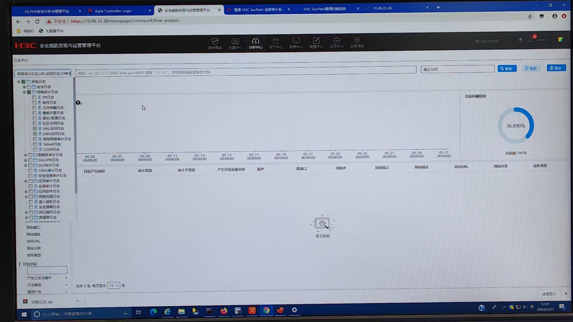 为什么没有URL审计日志和DNS日志?日志源的日志类型都勾选