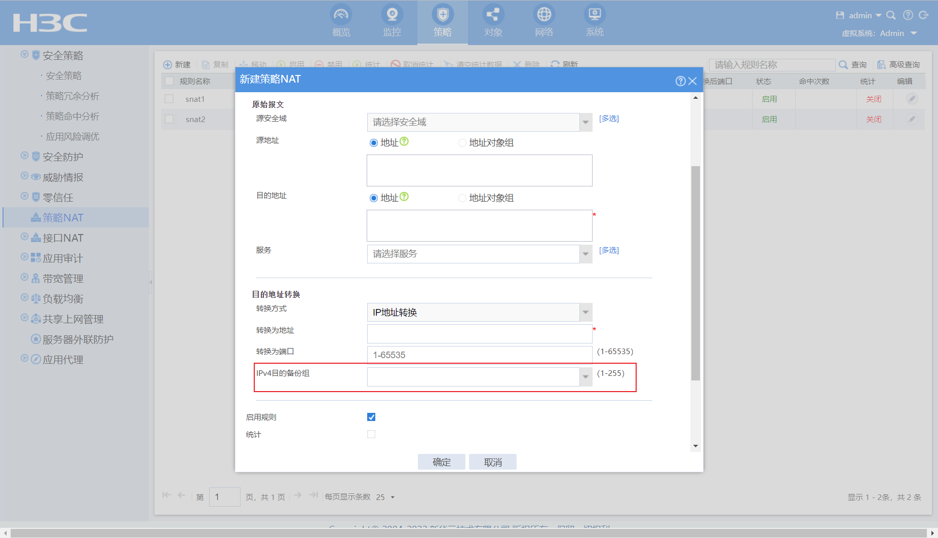 2、目的地址转换,这里ipv4目的备份组是否必须配置