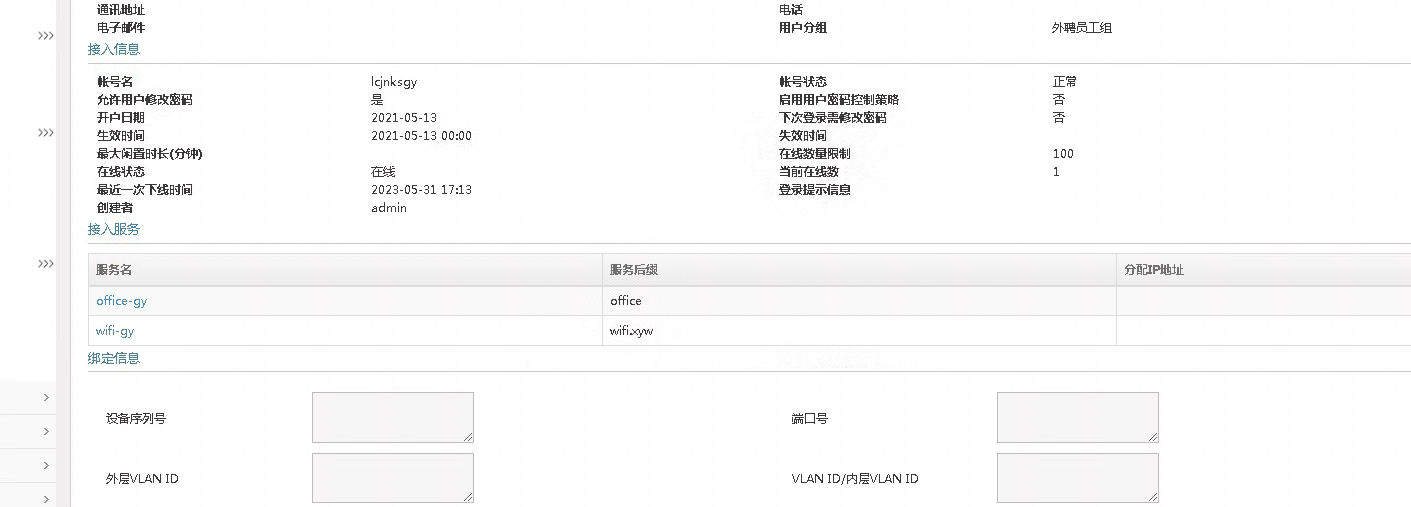 看下接入服务中是不是配置了“缺省单帐号最大绑定终端数”参数