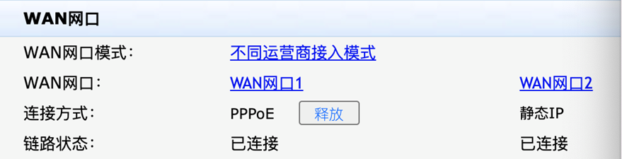 想咨询下各位老师,怎么确认多wan工作模式下,两路接入的的带宽都在被正常使用,或者说如何配置才能把两路宽带都使用到,部分接入配置如下: