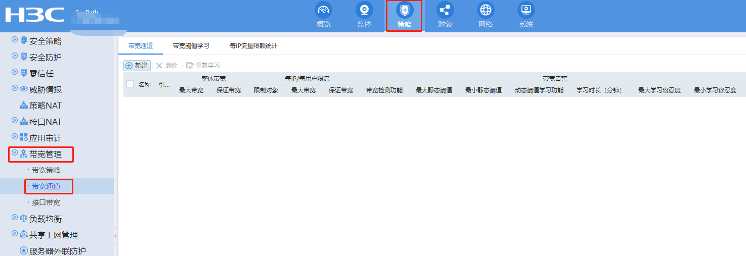 先配置带宽通道,然后在带宽策略里面调用