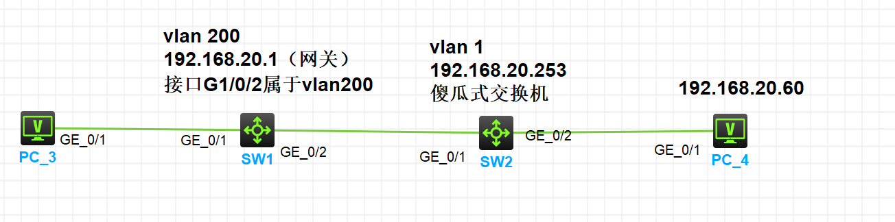 主机发出的数据请求是不带vlan 标签的,因为vlan 1 是默认本征vlan 不打标签,到SW1的g1/0/2 接口上才打上vlan 200 的标签。所以是你是理解的vlan1 怎么能和vlan 200 通的