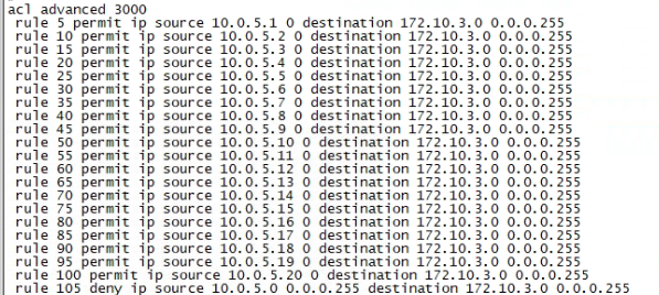 这个配置的作用是只允许10.0.5.1-20允许访问172.10.3.0