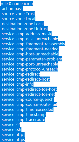 rule 0 他是到防火墙的icmp ssh http 流量, 你没有发全,下面应该有是放行或者是拒绝,看图片是允许这些流量到防火墙