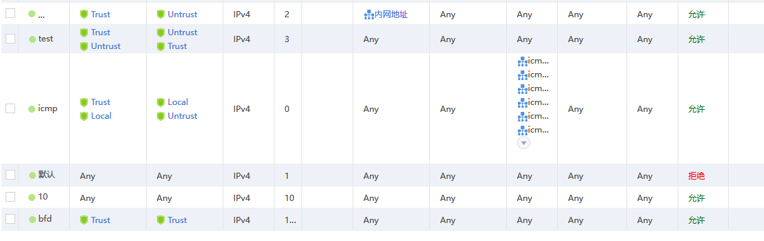 ID 10 是没有用的,因为上面有一个默认的是拒绝了,any-any的流量都匹配到这个默认策略额所以那个10 没有用了