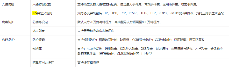 这个型号防火墙型号ACG1000-TE有入侵防护和wb界面防护功能吗