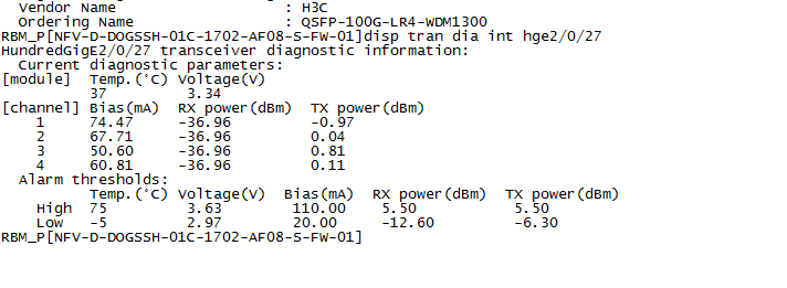 上面的图没收光(-36),换光纤、光模块和接口替换测试一下