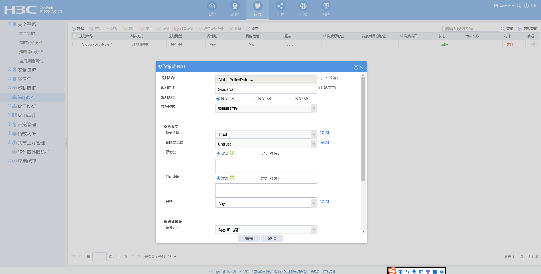 2. 确认防火墙的NAT配置是否正确,包括源地址和目的地址的转换是否正确。