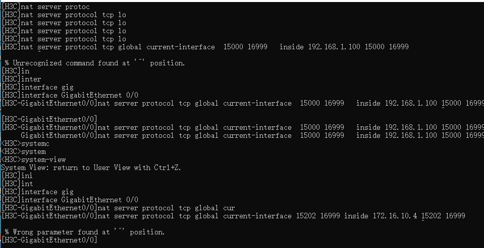 您给的命令我试了,提示% Unrecognized command found at '^' position.