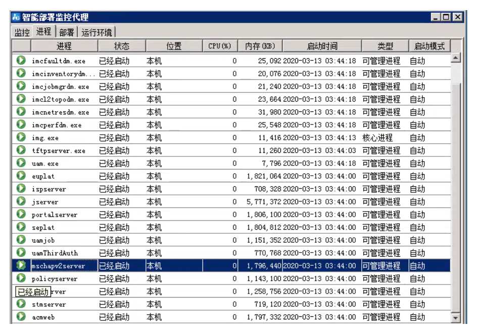 2、在IMC服务器上查下图进程,这个进程是管理数据库的。重启这个进程可以尝试解决故障。