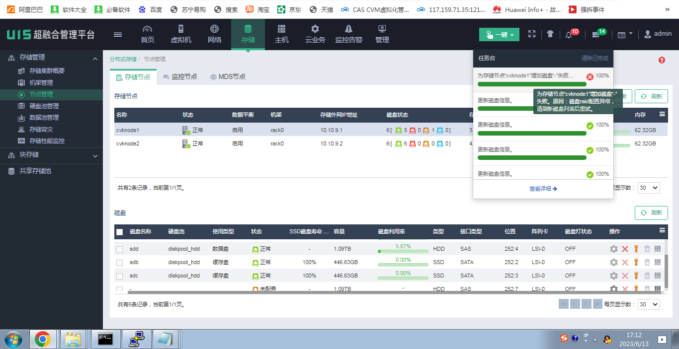 已经在hdm中对该硬盘做了raid0,但图标仍显示没有配置raid,且添加该硬盘且添加该硬盘报错