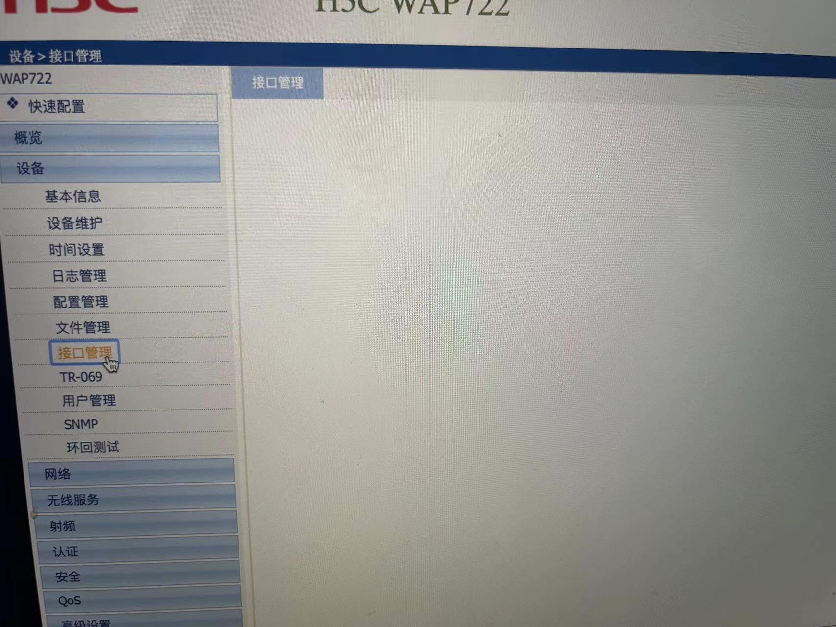 WAP722 的ap为什么设置成胖ap模式以后,接口管理是空的。 启动文件时wa4300_fat.bin。之前用在wac360下面挂着,现在重新出厂设置以后想当胖ap用,但是接口管理里面点开没有任何可设置项