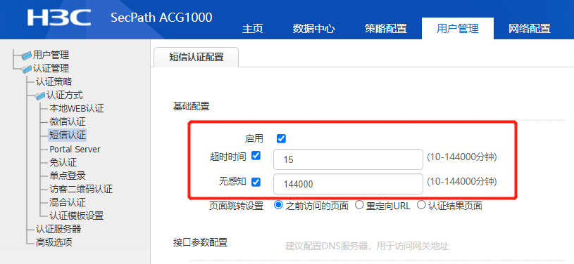 用户无感知认证功能及超时时间,默认值10080分钟,当认证用户首次认证下线后,在超时时间内再次上网无需认证,可以无感知上线。 |