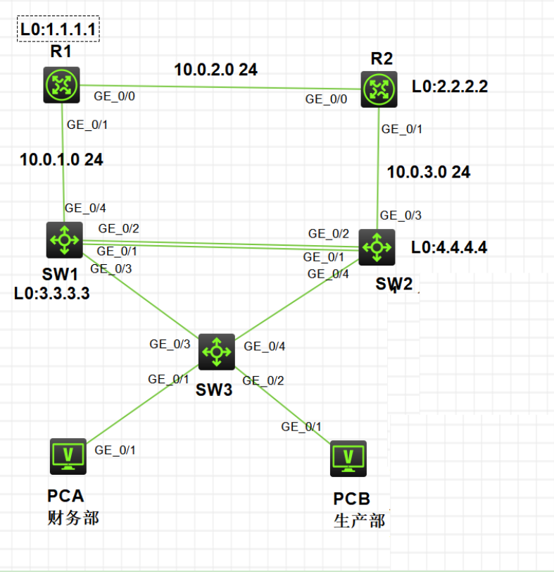 有偿!1、公司中有财务部和生产部等部门,需进行 vlan 的划分其中财务部属于 vlan 10,生产部属于 vlan 20