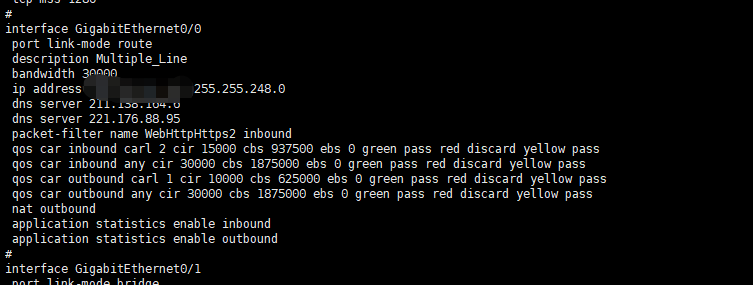 但是 使用show curr查看当前运行配置, 接口GigabitEthernet 0/0(wan接口)是应用了qos策略的