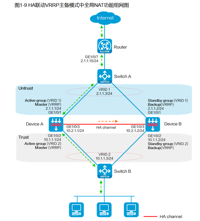 你发的这个图,写一条路由就行,下一跳是vrrp的地址,通过vrrp切换主备