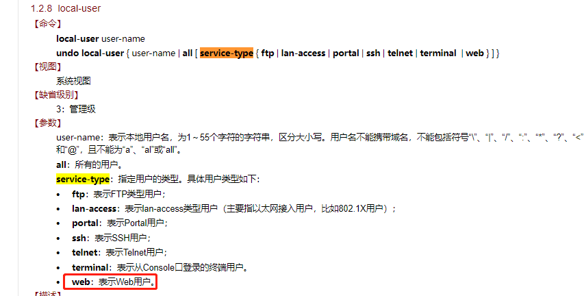 s5120-52p-si,local-user下service-type没有http,web等选项