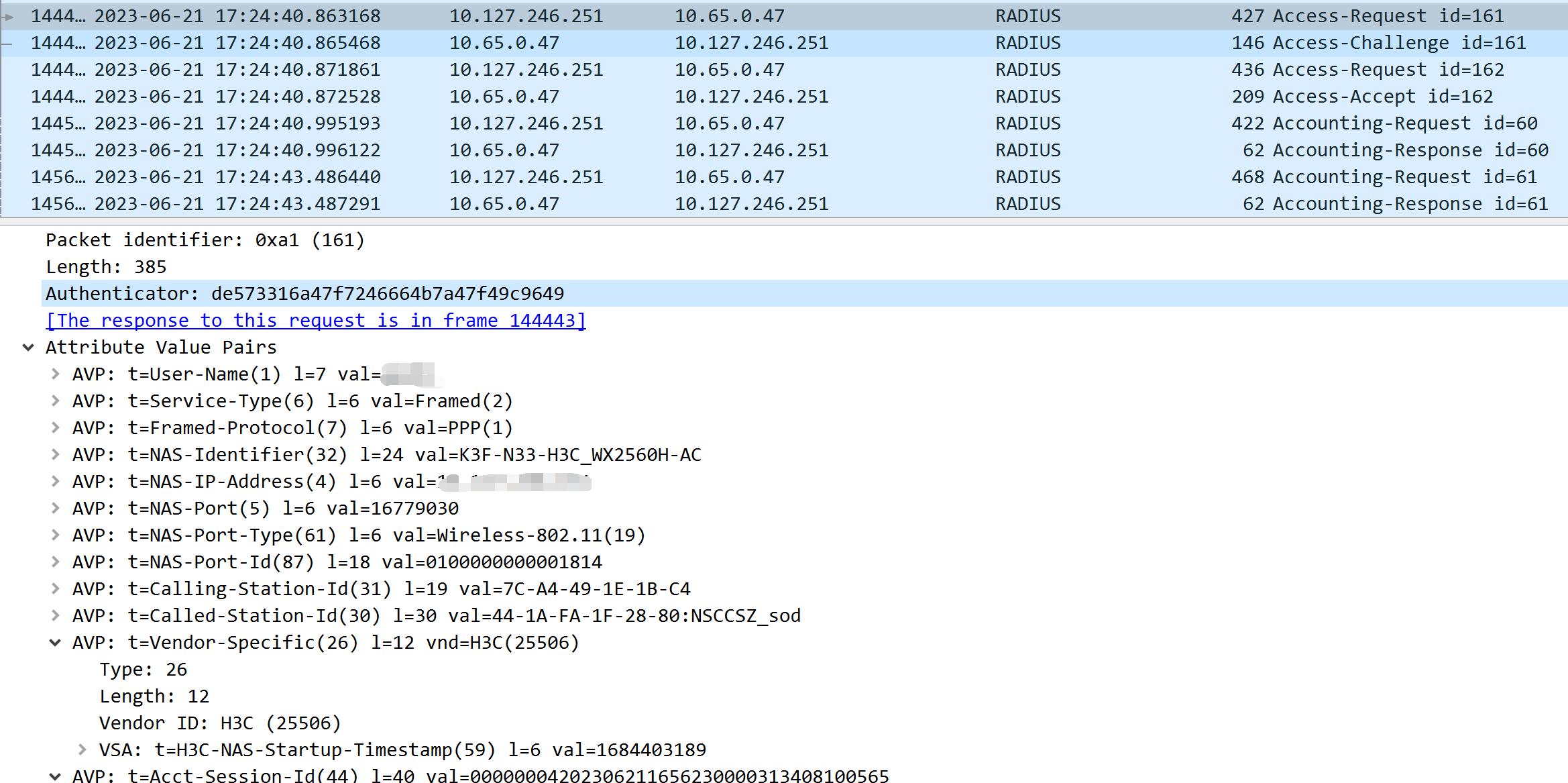 电脑通过同一个账号进行认证抓包,报文如下: