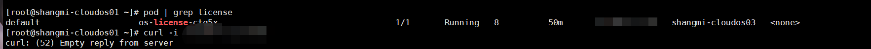 2、后台pod | grep license查看相关license容器状态是否正常,running(running状态也可重启容器尝试恢复)