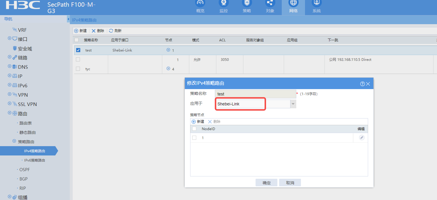 2、按照https://zhiliao.h3c.com/Theme/details/45964配置策略路由,但有几个需要注意的点