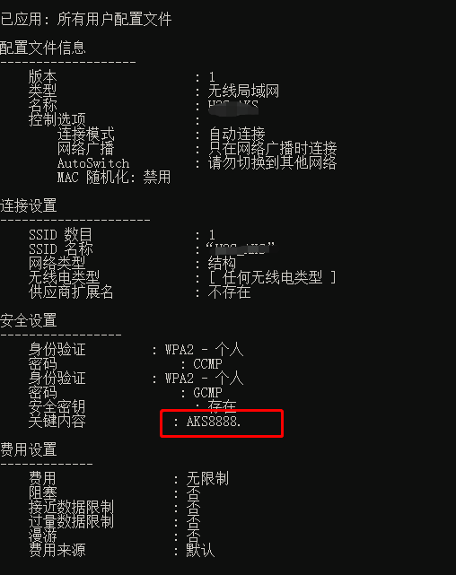 笔记本、手机上 、连接上对应的ssid ,可以查看到之前的密码: