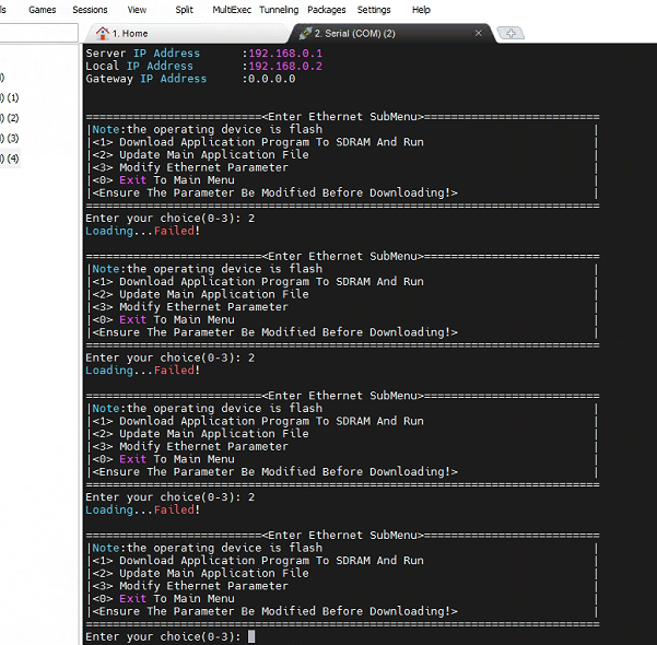 SERVER IP 192.168.0.1 LOCAL IP ADDRESS 192.168.0.2 两个地址无法PING通 导致 无法下载系统 用的3COM TFTP 软件 不知道什么原因