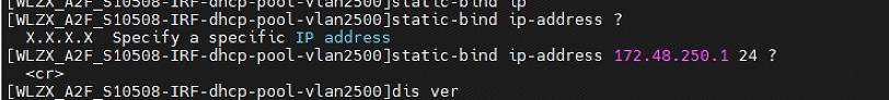 输入完static-bind ip-address 172.48.250.1 24 后面只能回车,没法添加mac地址