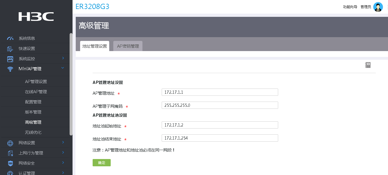 网关是192.168.0.254     AP管理地址池要不要修改?