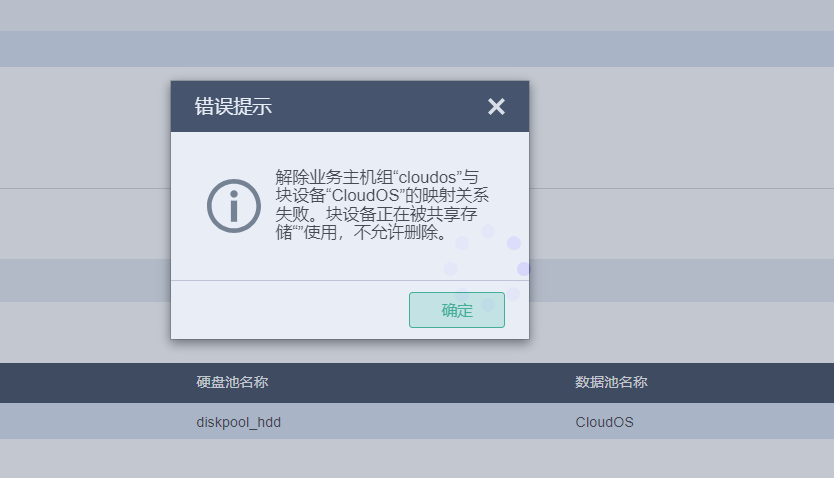 后想删除该块设备 重新划分存储来关联时,删除失败