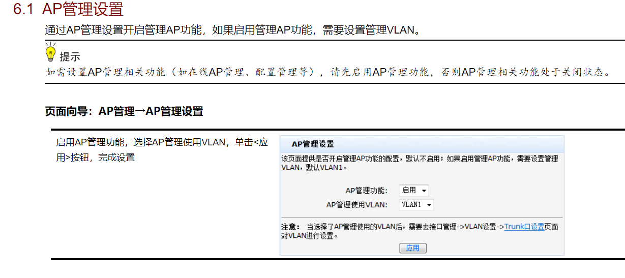 可在 页面向导:AP管理→AP管理设置 进行开启