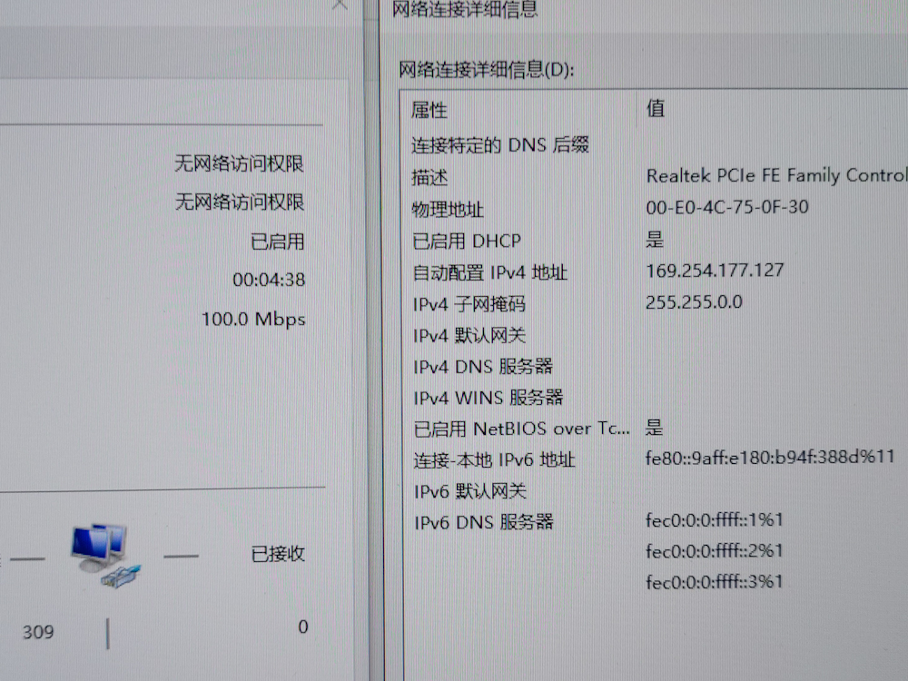 释放清空之后电脑可以正常获取ip