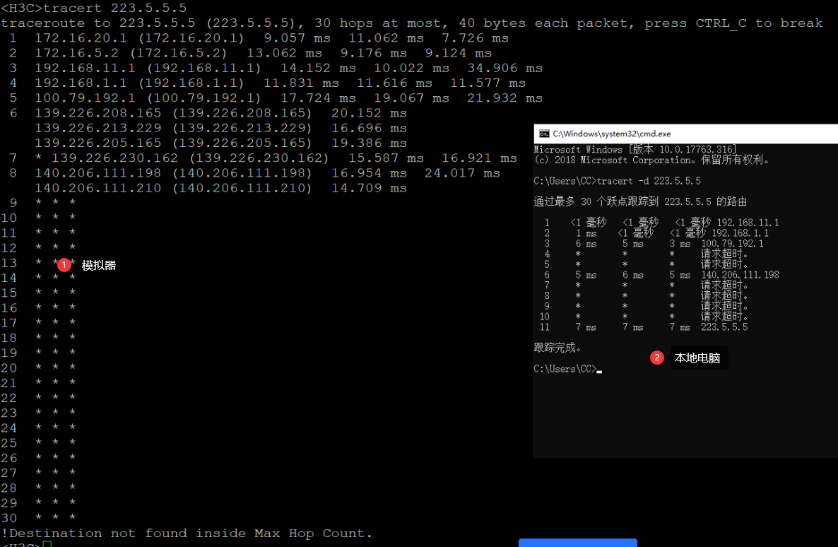为什么模拟器tracert出公网和 我本地电脑tracert跟踪结果不一样呢?