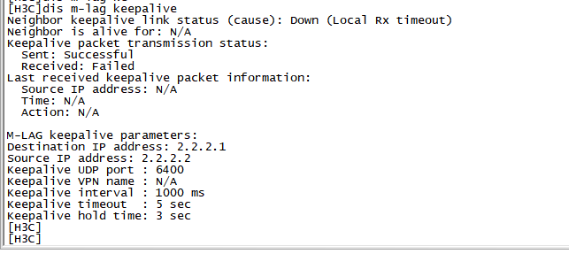 看看有没有keepalive线缆,之后两端的IP地址配置是否存在问题
