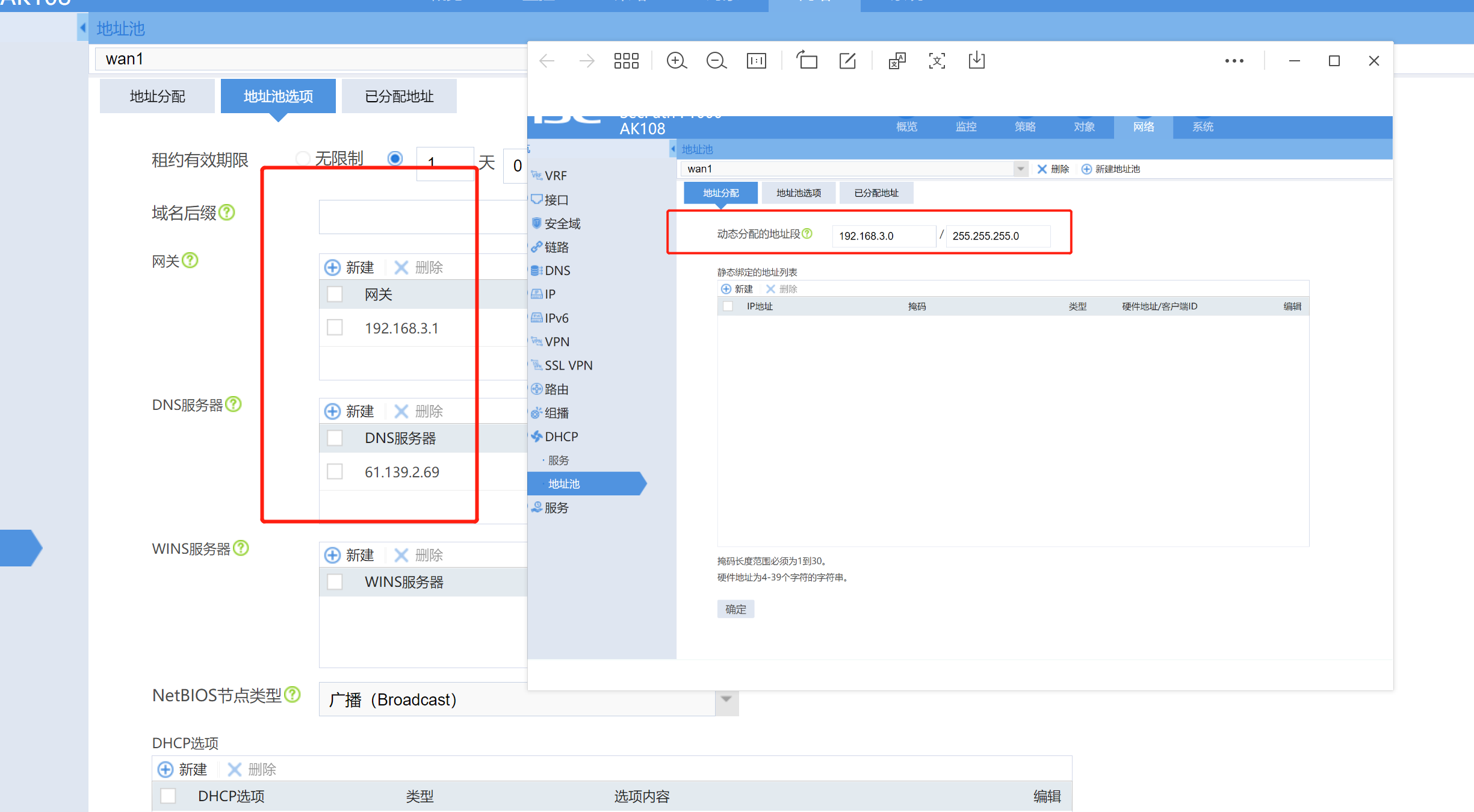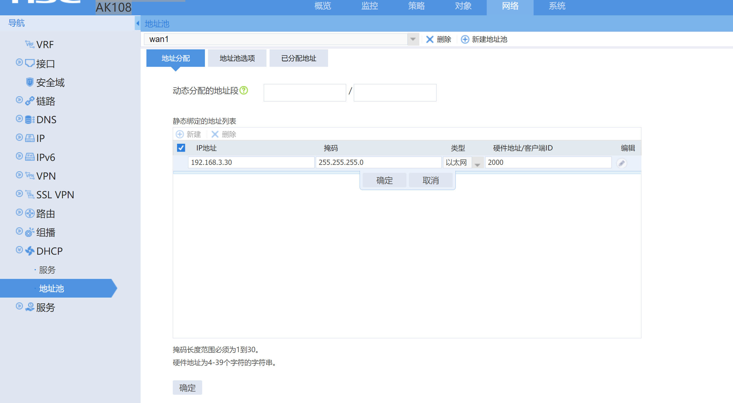 SecPath F1000-AK108 怎么在web界面配置华三路由器dbcp地址池