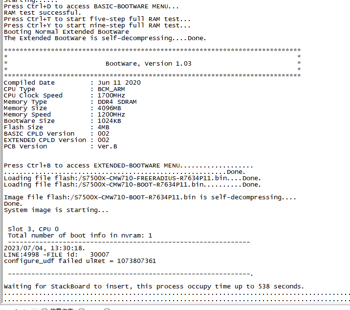 检查一下是否又板卡没有插紧,另外你现场是不是堆叠的组网,如果是线拆堆叠后再升级试试