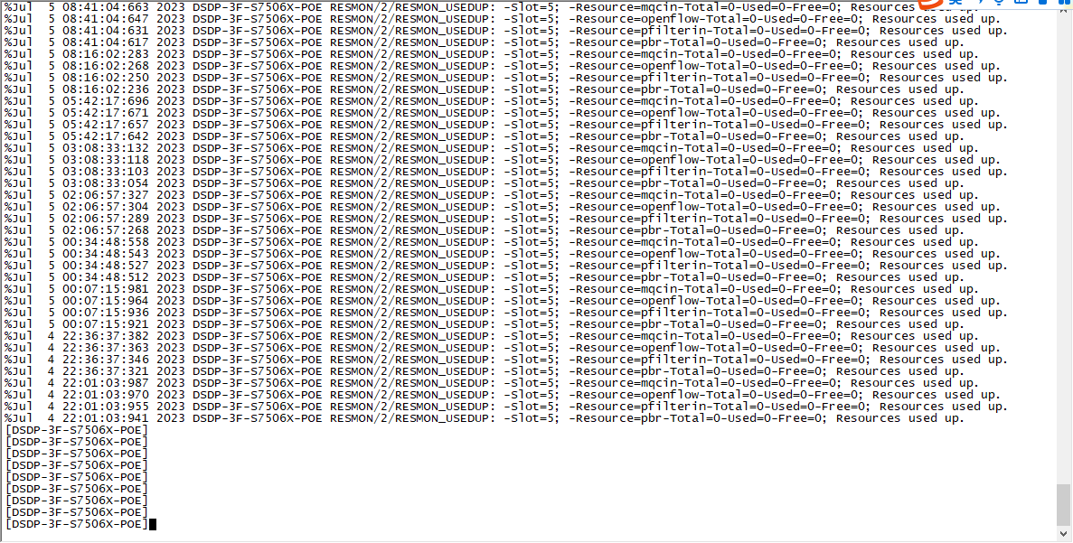 RESMON/2/RESMON_USEDUP: -Slot=5; -Resource=openflow-Total=0-Used=0-Free=0; Resources used up.
