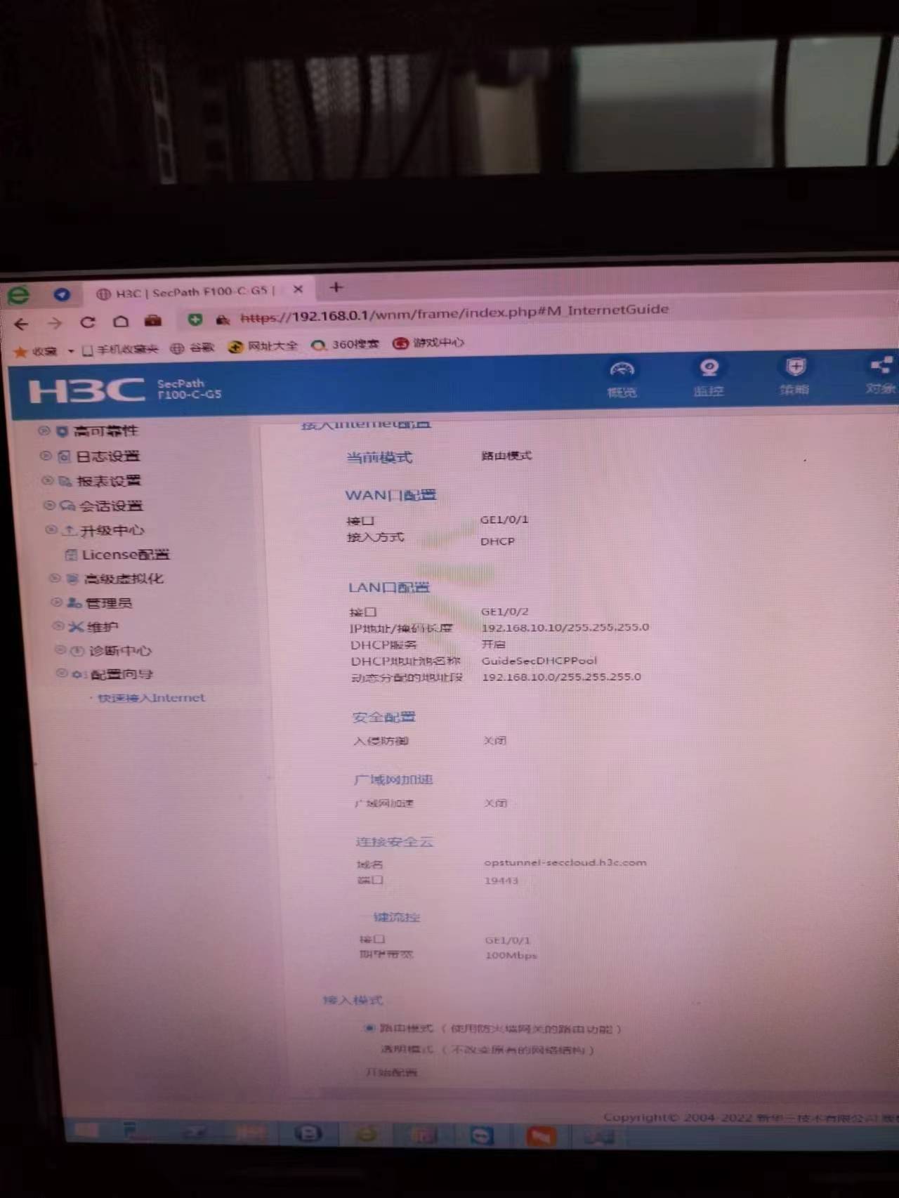 F100-C-G5配置路由模式在DCHP时不能获取IP,但在指定IP下能连网使用正常,请问在DCHP如何配置才能正常使用,请指点,谢谢