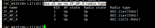 dis wl ap na 2F_AP_4 radio type //2F_AP_4是你的AP名称