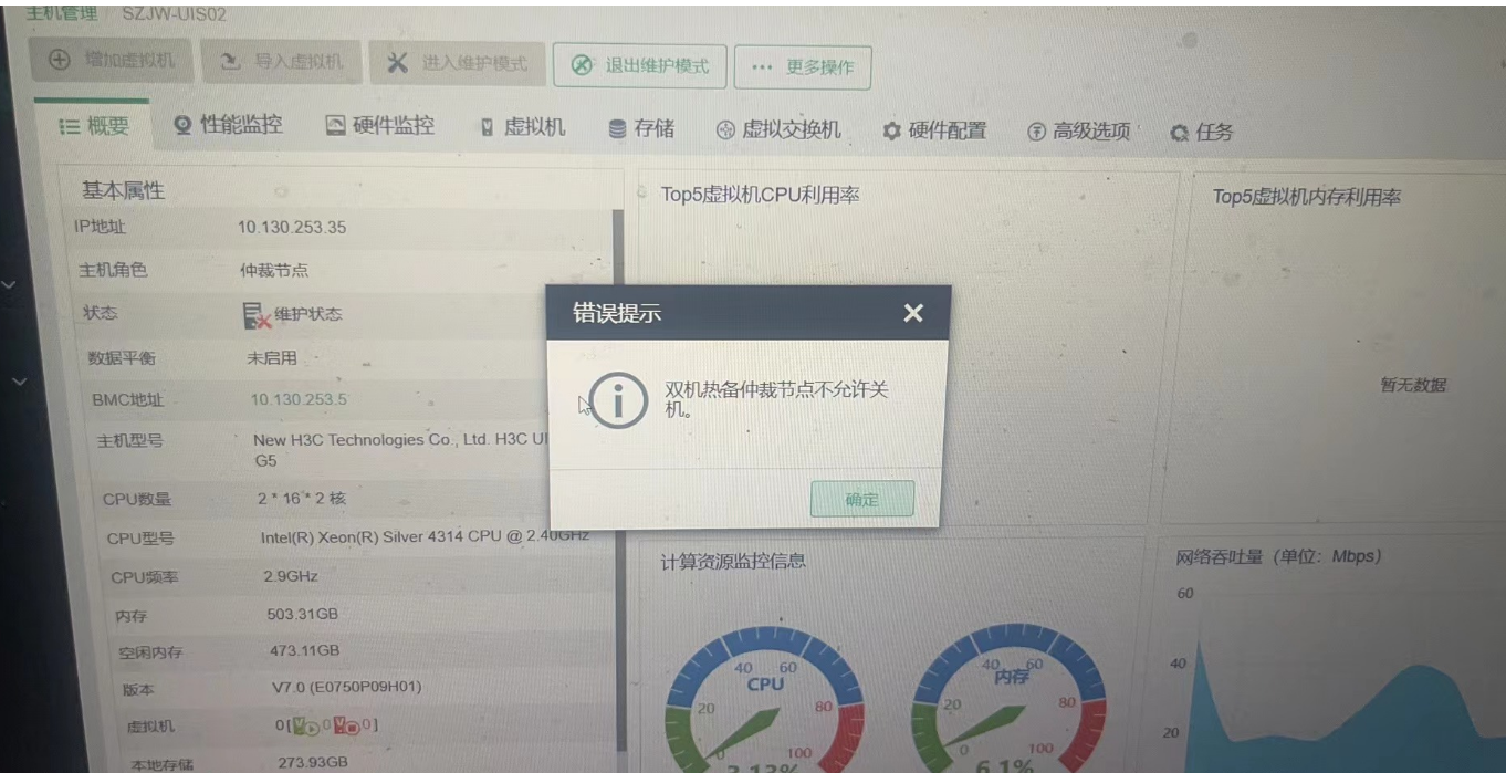 超融合,仲裁节点关机时提示双机热备仲裁节点不允许关机,需要怎么操作?