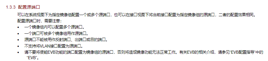 1出3入的意思是:Outbound方向的源端口镜像,只能有一个出端口。再配置第二组镜像包含outbound方向端口时,会提示资源不足。