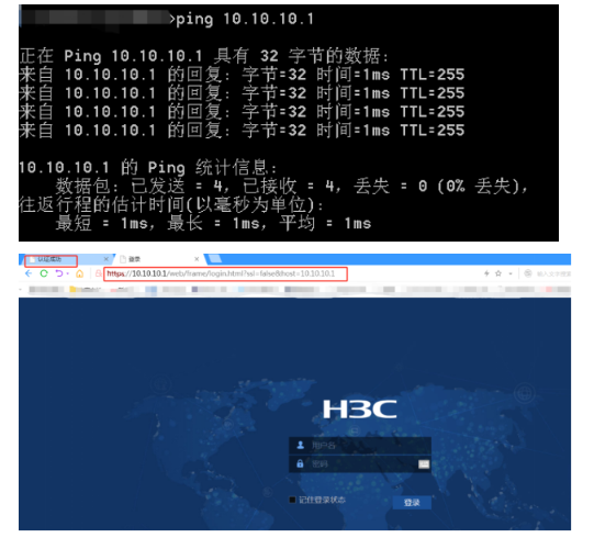 此时认证成功的电脑可以Ping通交换机的10.10.10.1并且可以通过该IP地址访问交换机的WEB页面。