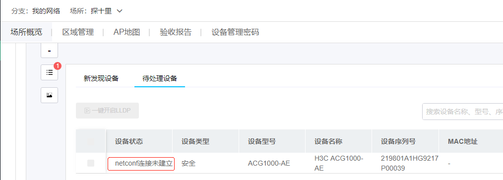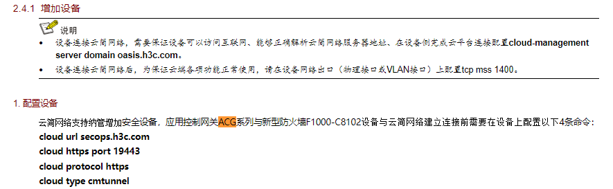 绿洲平台上绑定纳管ACG,配置后显示设备离线,ACG型号是 ACG1000-AE