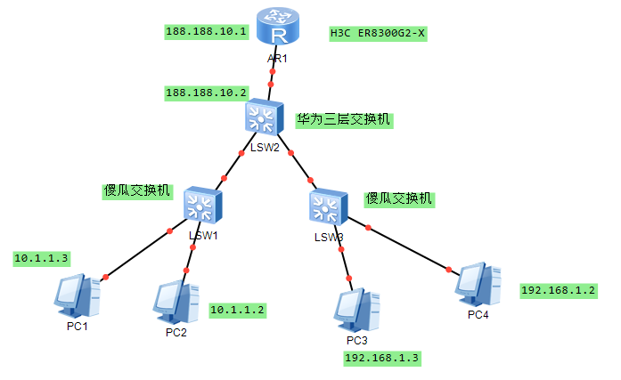 ip route-static10.1.1.0 24 188.188.10.2