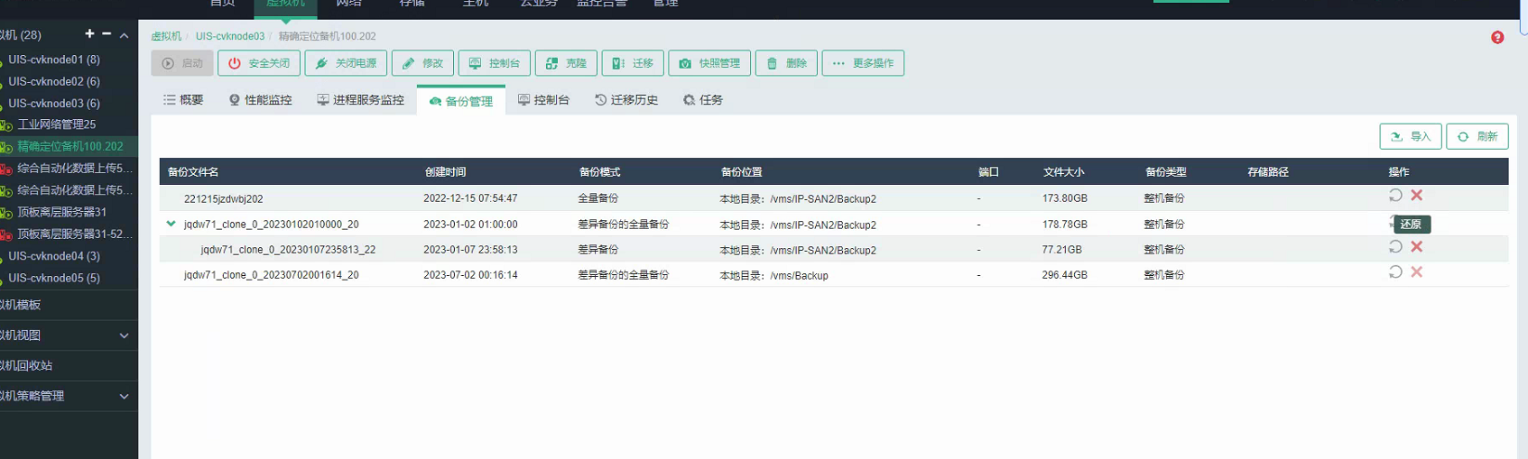 看虚拟机任务里面最后一次备份任务是前两天的,已经备份完了。