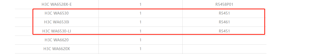 一下是WX5560H 对于指定型号ap,管理需升级的最低版本要求;