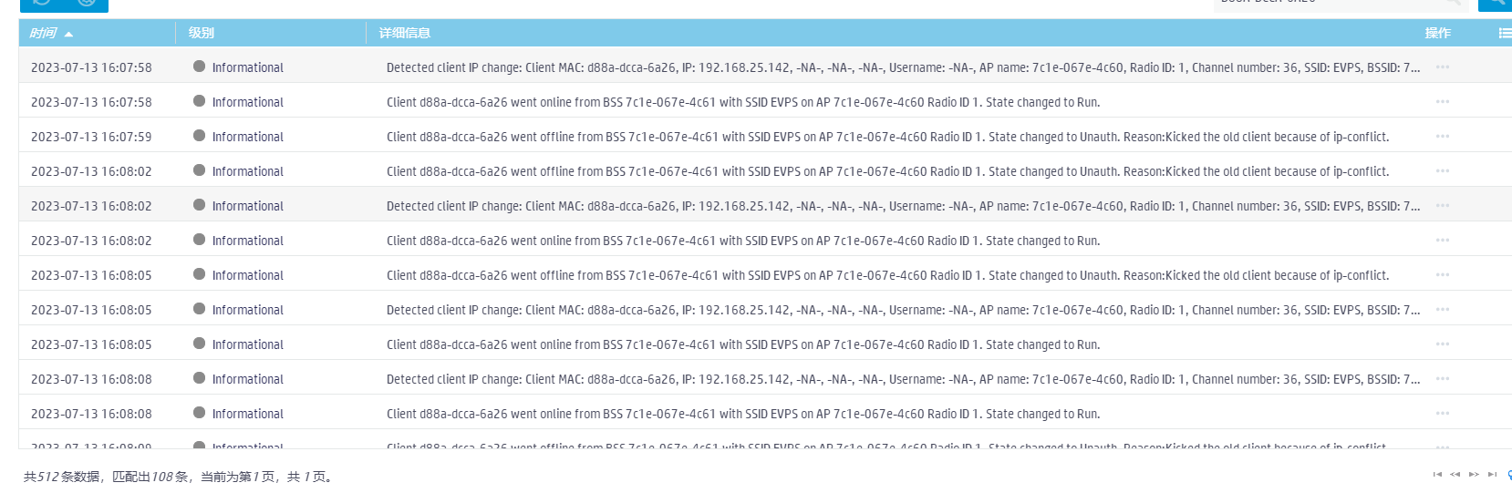 kicked the old client because of ip-conflict这个IP地址冲突,导致剔除之前连接的客户端。