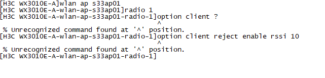 [AC-wlan-ap-ap1-radio-1] option client reject enable rssi 10