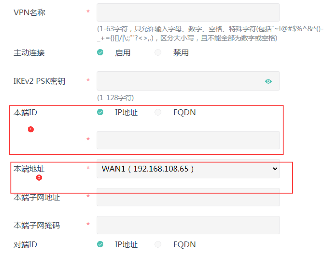 1、本端ID参数填写:(选项 IP地址/FQDN),如选IP地址,参应如何填写