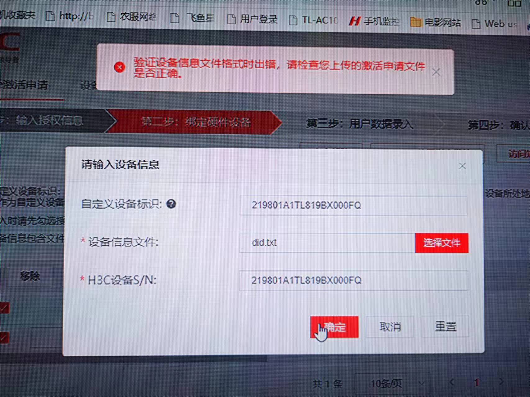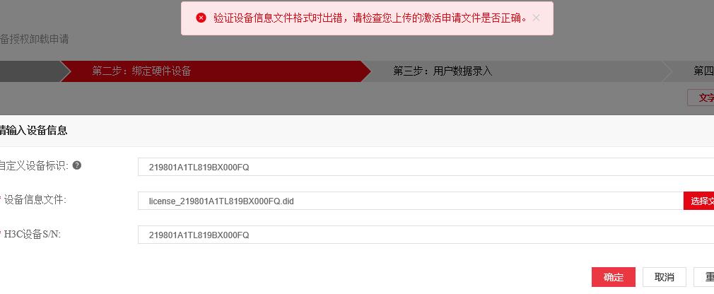 MSR830-4LM-WiNet 如何添加授权,老是提示验证设备信息文件格式出错。图片只是一种还有好多格式
